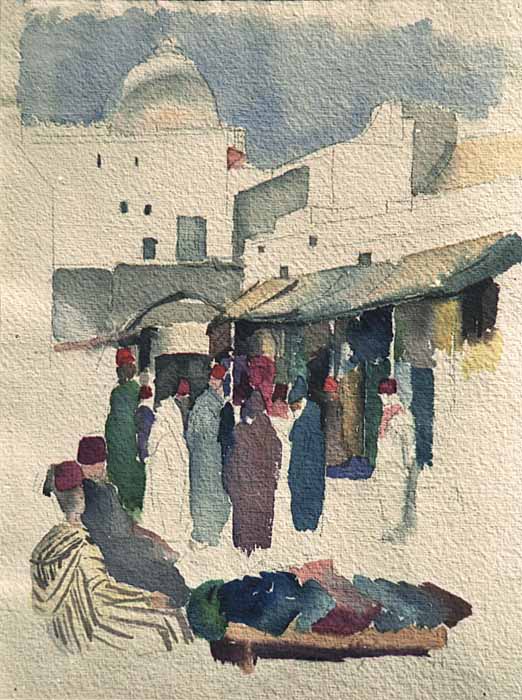 Platz mit Moschee in Tetuan, 1954, 31 x 23 cm, Zeichnung, Aquarell auf beigem Büttenpapier