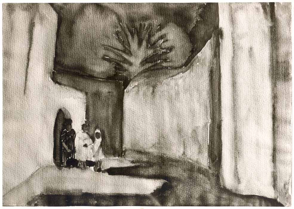Straße in Tetuan, 1954,x cm, Zeichnung, Aquarell auf beigem Büttenpapier