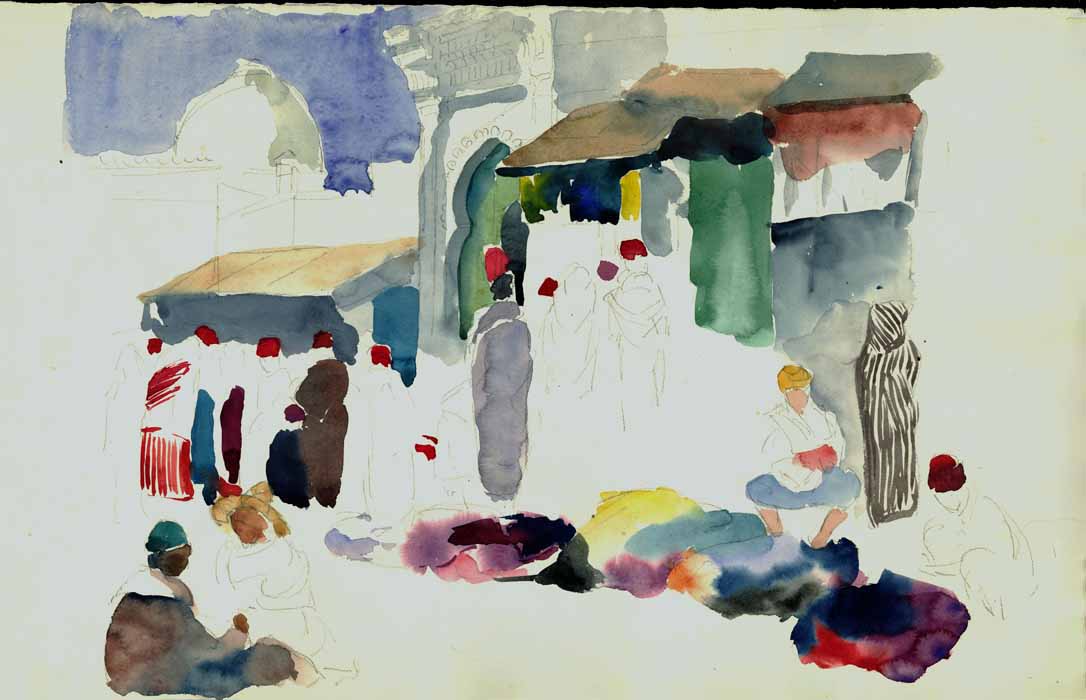 Färberviertel in Tetuan, 1954, 31 x 46 cm, Zeichnung, Aquarell auf beigem Büttenpapier