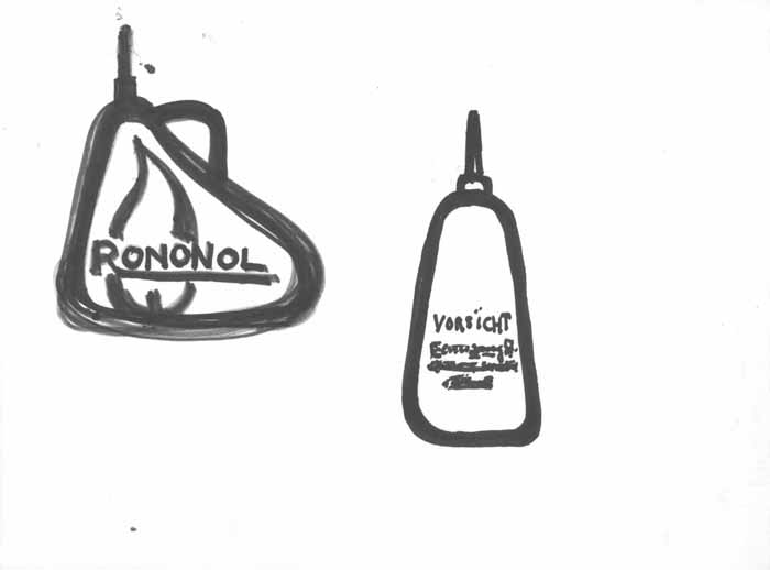 Feuerzeugbenzin-Behälter- Entwurf "Flamme", 1956, 20 x 24 cm, Zeichnung; Filzstift auf Zeichenblockpapier