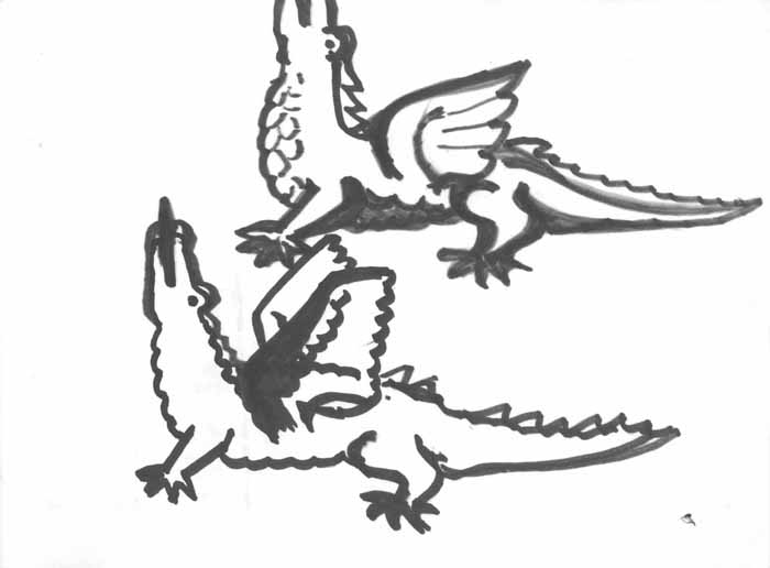 Feuerzeugbenzin-Behälter- Entwurf "Krokodil" 1956, 19 x 24 cm, Zeichnung; Filzstift auf Zeichenblockpapier