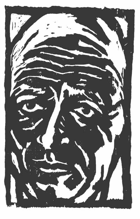 Bildnis Dr. Troeger 1957, 46 x 29 cm, Druckgrafik: Linolschnitt auf Japan-, Bütten- und Druckpapier