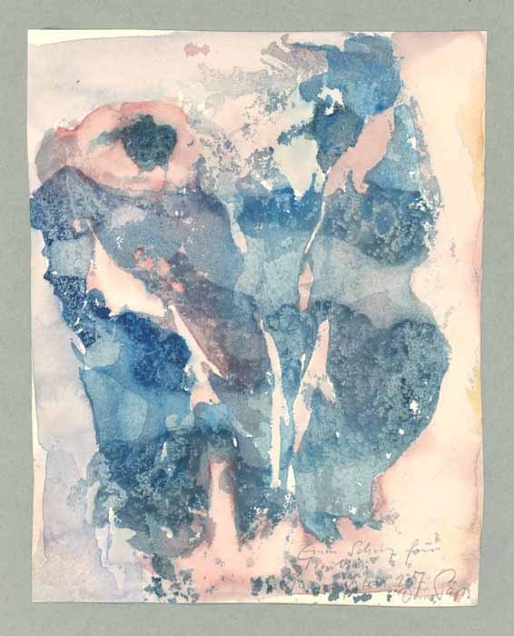 Rote und blaue Mohnblumen 1957, 43 x 56 cm, Zeichnung: Aquarell auf beigem Büttenpapier