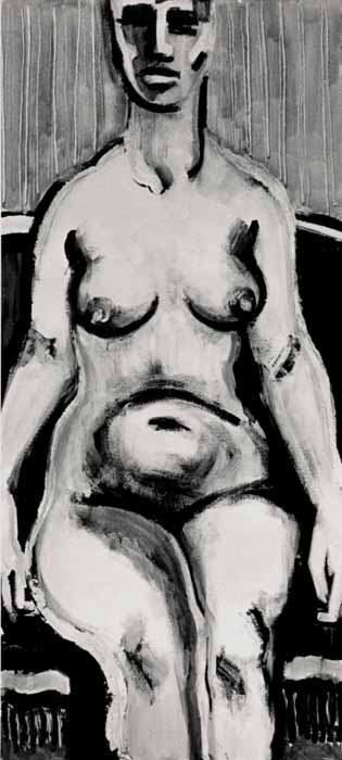 Sitzender Akt auf einem Stuhl 1957, Gemälde: Temperaaufzeichnung für Öl auf grundierter Spanplatte
