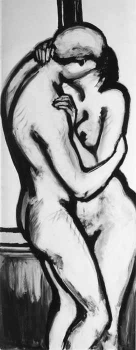 Der Kuß (nach E.Munch) 1957, 150 x 55 cm, Gemälde: Temperaaufzeichnung für Öl auf grundierter Spanplatte