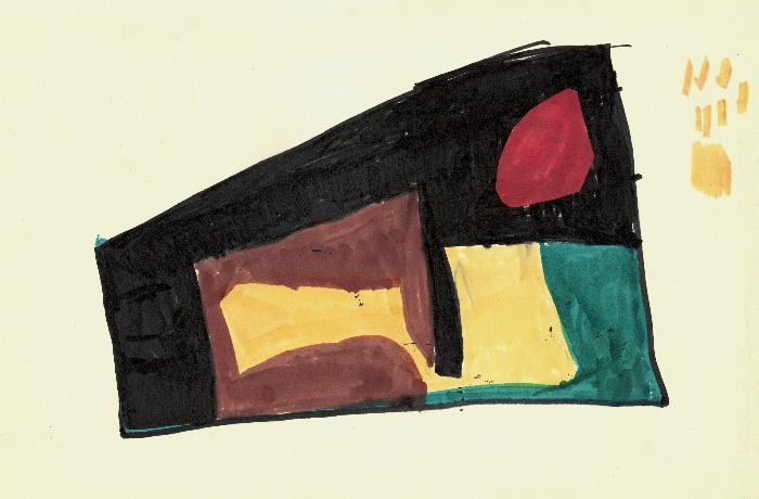 Mosaiktisch (Entwurf); 1958, 20 x 31 cm, PM: 27,7 x 42,5 cm, Zeichnung; Farbige Filzstifte auf beigem Zeichenkarton