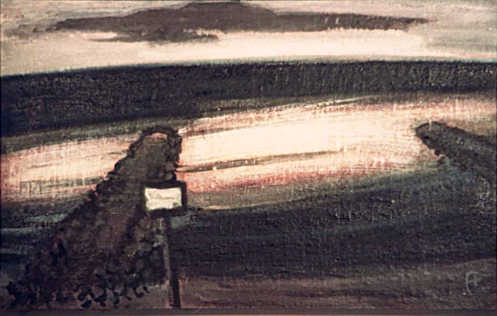 Strand bei Scheveningen; 1958, 40 x 62 cm, Gemälde: Öl auf grundierter Hartfaserplatte
