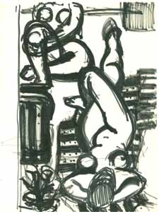 Frauen am Strand, 1959, Maße: 30,5 x 22,2 cm, PM: 30,5 x 22,2 cm, Zeichnung: Schwarze Filzstifttusche auf beigem Zeichenkarton, Reg.Nr.: E 59 - 17/05 - 04