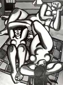 2 nackte Frauen mit 3 Blüten, 1959, Maße: 27,5 x 36 cm, PM: 30 x 40 cm, Zeichnung: Schwarze Filzstifttusche auf beigem Zeichenkarton, Reg.Nr.: E 59 - 08/10 - 12