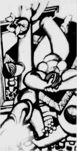 Eine Hockende u. 1 Frau mit Früchtekorb, 1959, Maße: 23,5 x 22,5 cm, PM: 23,5 x 22,5 cm, Zeichnung: Schwarze Filzstifttusche auf beigem Zeichenpapier, Reg.Nr.: Z 59 - 23/03 - 19