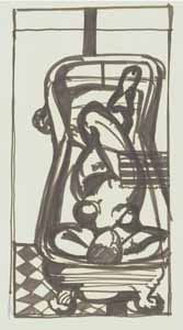Frau in der Badewanne, 1959, Maße: 36,5 x 19 cm, PM: 39 x 30 cm, Zeichnung: Schwarze Filzstifttusche auf Zeichenpapier, Reg.Nr.: E 59 - 08/32 - 13