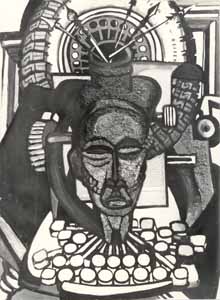 Maske, 1959, Maße: 136 x 101 cm, Gemälde: Collage, Öl, Spachtelmasse, Putz collagiert und Zeitungspapier auf grundierter Hartfaserplatte, Reg.Nr.: B 59 - 50/84 - 14