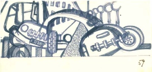 Autofragmente, 1959, Maße: 13 x 28 cm, PM: 21 x 28,2 cm, Zeichnung; Schwarze Filzstifttusche auf beigem Zeichenblockpapier, dat. ru "59" - Reg.Nr.: Z 59 - 09/22 - 24