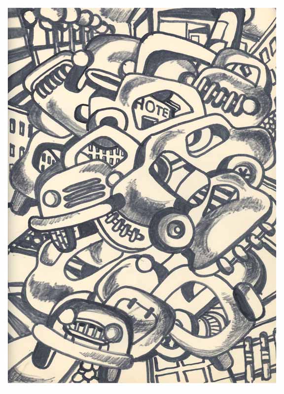 Auto, 1960; Maße: 32 x 24 cm,Graphik: Handzeichnung, Tusche auf Zeichenpapier