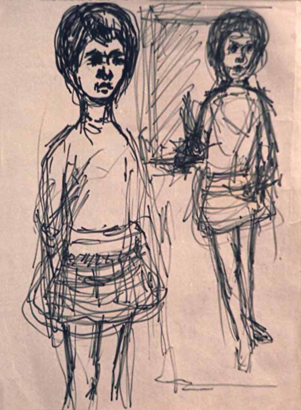 Zwei Mädchen, 1960; Maße: 28 x 20 cm,Graphik: Handzeichnung, Tusche auf Zeichenpapier