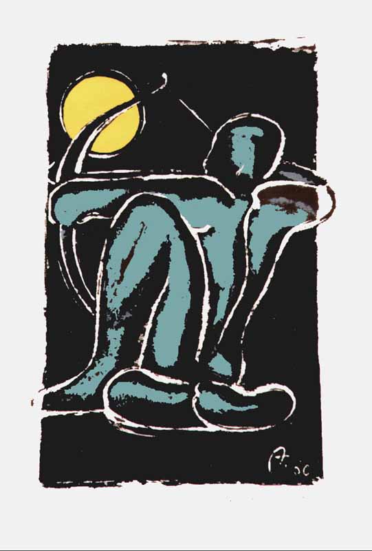 Bogenschütze, graublau, 1960; Maße: 35 x 23 cm,Druckgraphik: Siebdruck auf Büttenpapier