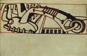 Auto 2, 1960; Maße: 30 x 22 cm, Graphik: Handzeichnung, Tusche auf Zeichenpapier; sign. u. dat. auf RS: "Auto" Bl. 2/I. A. 20/I./60, Erbeng. Arndt - Reg. Nr.: E60 - 09/24 - 06