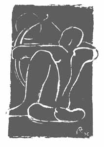 Zwei hockende Frauen und 3 Sonnenblumen, 1960; Maße: 21 x 28 cm, Graphik: Handzeichnung, Tusche auf Zeichenpapier; sign. u. dat. l.u. "I.I.60 A.", Erbeng. Arndt - Reg. Nr.: E60 - 32/24 - 01