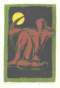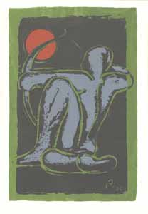 Bogenschütze, sw,rotbraun, grün und mit roter Mond, 1960; Maße: 35 x 23 cm, Druckgraphik: Siebdruck auf Büttenpapier; Auflage 100 (alle Var., max. 4 Siebe), Druckinitiale r.u. A.60 Reg. Nr.: S60 - 18/08c - 18