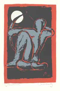 Bogenschütze, schwarz, graublau, rot und mit weißem Mond, 1960; Maße: 35 x 23 cm, Druckgraphik: Siebdruck auf Büttenpapier; Auflage 100 (alle Var., max. 4 Siebe), Druckinitiale r.u. A.60 Reg. Nr.: S60 - 18/08d - 19