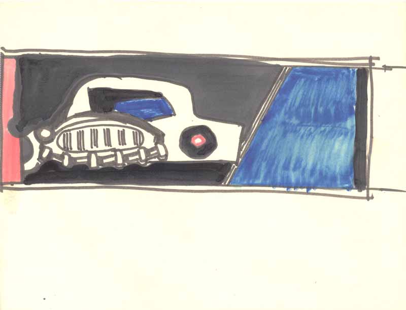 Auto vor blauer Straße, 1961; Maße: 14 x 37 cm,Graphik: Handzeichnung: Tusche auf Zeichenpapier