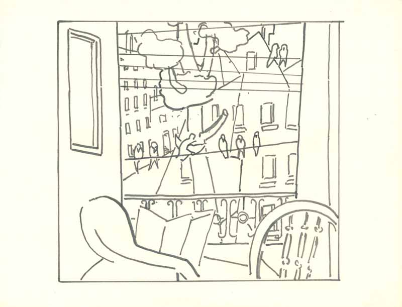 Blick aus dem Fenster,1961; Maße: 25,5 x 28 cm,Graphik: Handzeichnung: Tusche auf Zeichenpapier