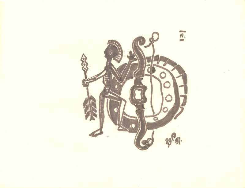 Entwurf für ein Bogensportklub-Emblem VI, 1961; Maße: 30 x 19 cm,Graphik: Handzeichnung: Tusche auf Zeichenpapier