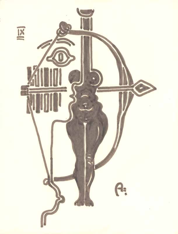 Entwurf für ein Bogensportklub-Emblem IX, 1961; Maße: 37 x 25 cm,Graphik: Handzeichnung: Tusche auf Zeichenpapier