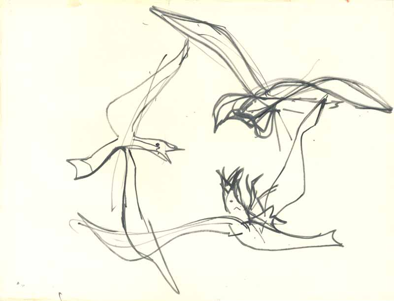 3 Möwen, 1961; Maße: 30 x 33 cm,Graphik: Handzeichnung: Tusche auf Zeichenpapier