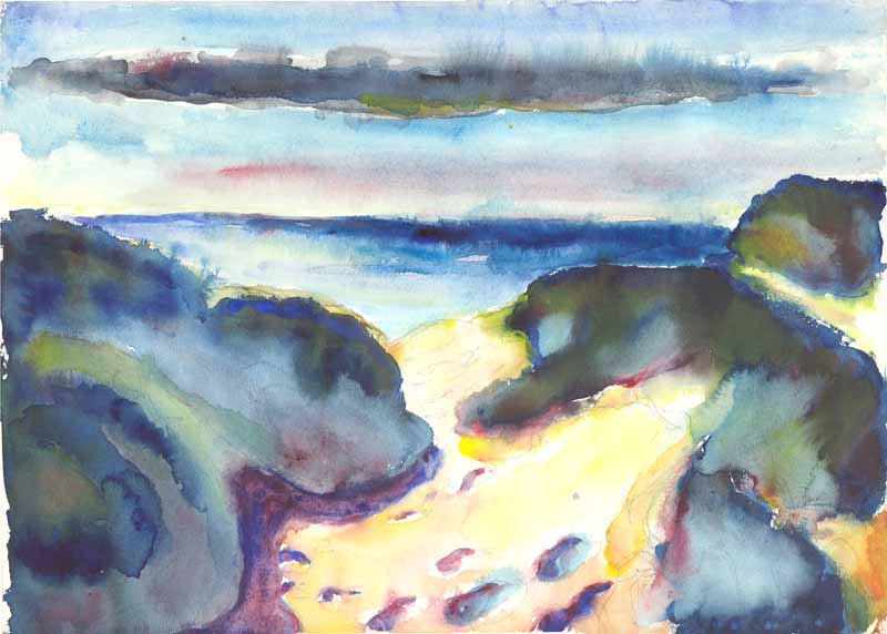 Dünenlandschaft, 1961; Maße: 33 x 45 cm,Graphik: Handzeichnung: Aquarell auf Büttenpapier