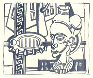Auto und Maske, 1961; Maße: 28 x 34 cm, Graphik: Handzeichnung: Tusche auf Zeichenpapier; Erbeng. Arndt - Reg. Nr.: Z61 - 09/28