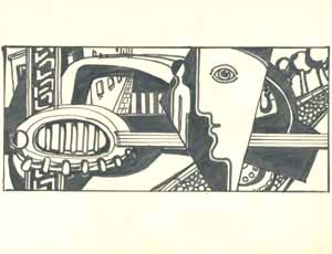 Autoelemente und Kopf im Profil, 1961; Maße: 17 x 38 cm, Graphik: Handzeichnung: Tusche/ Tempera auf Zeichenpapier; Erbeng. Arndt - Reg. Nr.: Z61 - 14/32