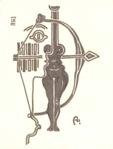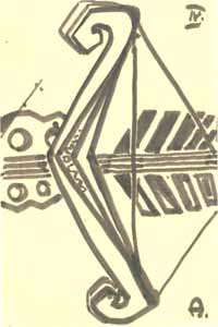 Entwurf für ein Bogensportklub-Emblem II, 1961; Maße: 18 x 12 cm, Graphik: Handzeichnung: Tusche auf Zeichenpapier; Verbleib unbekannt - Reg. Nr.: E61 - 22/03b