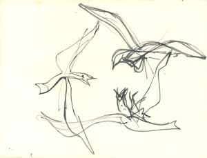3 Möwen, 1961; Maße: 27 x 30 cm, Graphik: Handzeichnung: Tusche auf Zeichenpapier; Erbeng. Arndt - Reg. Nr.: E61 - 09/15