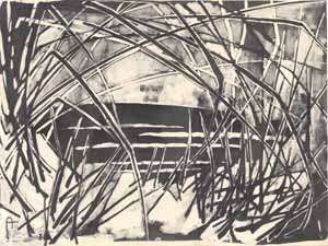 Strandgräser am Meer, 1961; Maße: 30 x 40 cm, Graphik: Handzeichnung: Wachsfarbe auf Zeichenkarton; Erbeng. Arndt - Reg. Nr.: Z61 - 21/06