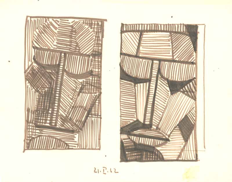 2 Gesichter, 1962; Maße: 27 x 30 cm,Graphik: Handzeichnung: Tusche auf Zeichenpapier