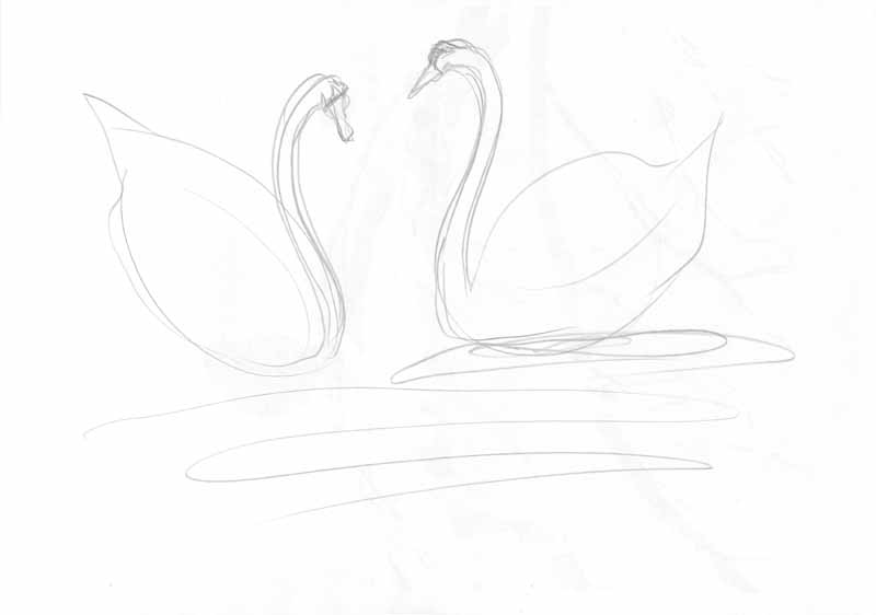 Schwäne - 3, 1962; Maße: 30 x 38 cm,Graphik: Handzeichnung: Bleistift auf Zeichenpapier