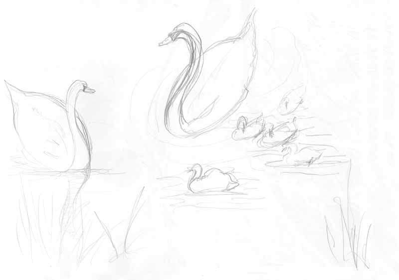 Schwäne - 6, 1962; Maße: 30 x 38 cm,Graphik: Handzeichnung: Bleistift auf Zeichenpapier