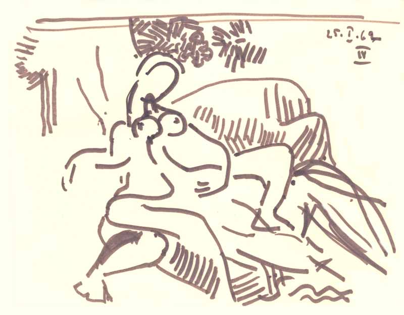 Corregio IV, 1962; Maße: 30 x 38 cm,Graphik: Handzeichnung: Tusche auf Zeichenpapier