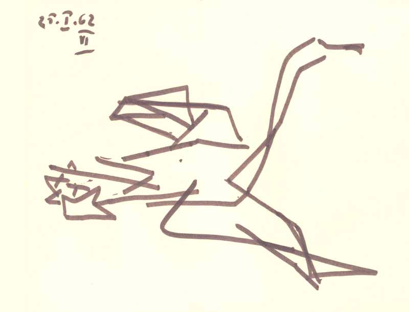 Corregio VI, 1962; Maße: 30 x 38 cm,Graphik: Handzeichnung: Tusche auf Zeichenpapier