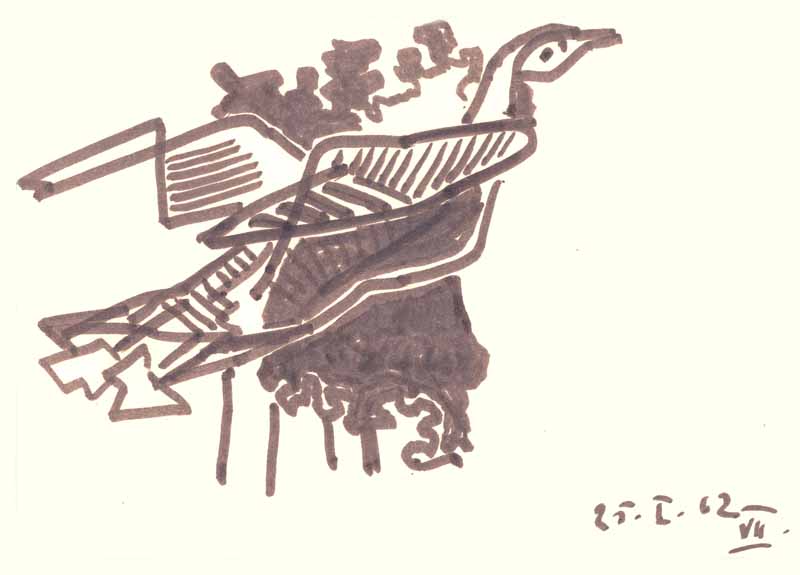 Corregio VII, 1962; Maße: 30 x 38 cm,Graphik: Handzeichnung: Tusche auf Zeichenpapier