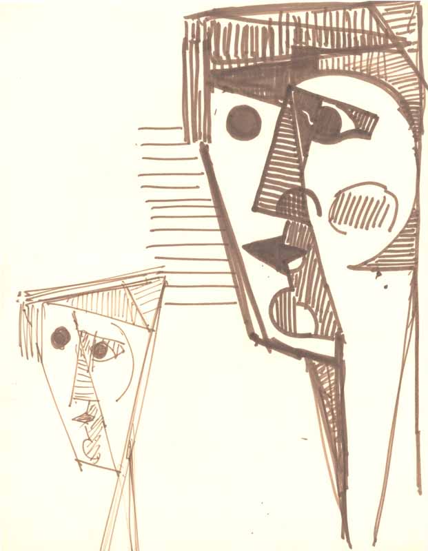 2 Gesichter, 1962; Maße: 38 x 29 cm,Graphik: Handzeichnung: Tusche auf Zeichenpapier