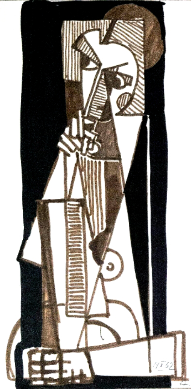 Frau in kubistischem Stil, 1962; Maße: 38 x 27 cm,Graphik: Handzeichnung: Tusche auf Zeichenpapier