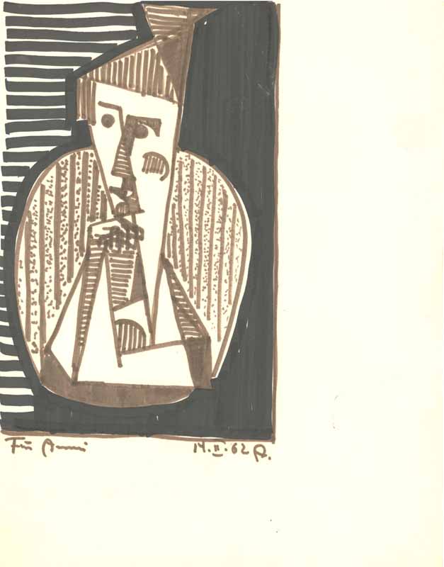 Porträt A.A. mit Arabermantel, 1962; Maße: 31 x 19 cm,Graphik: Handzeichnung: Tusche auf Zeichenpapier