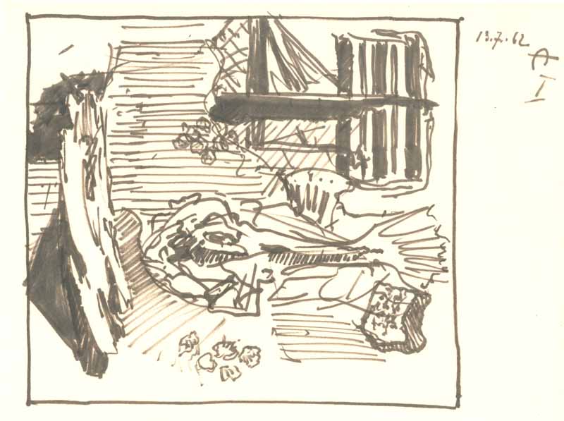 Meer und Fisch I, 1962; Maße: 21 x 28 cm,Graphik: Handzeichnung: Tusche auf Zeichenpapier