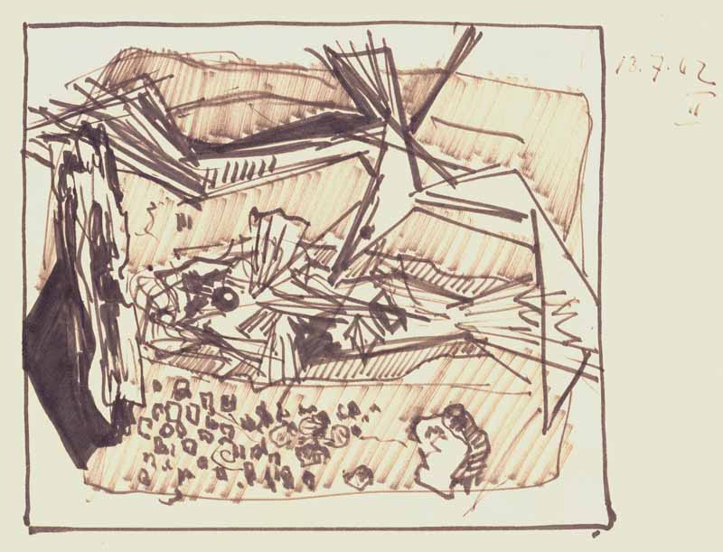 Meer und Fisch II , 1962; Maße: 21 x 28 cm,Graphik: Handzeichnung: Tusche auf Zeichenpapier