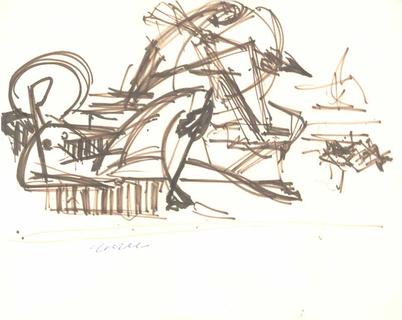 Frauen am Strand , 1962; Maße: 22 x 37 cm,Graphik: Handzeichnung: Tusche auf Zeichenpapier