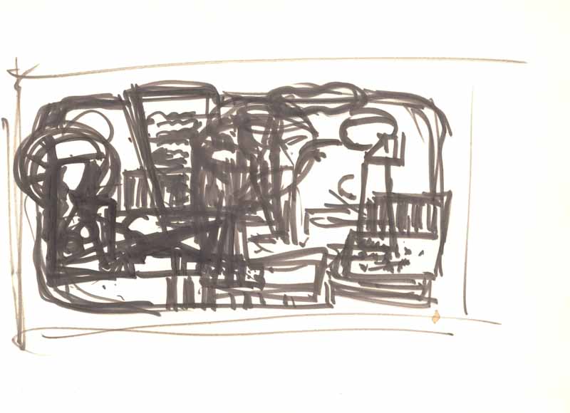 Frauen am Strand , 1962; Maße: 22 x 38 cm,Graphik: Handzeichnung: Tusche auf Zeichenpapier