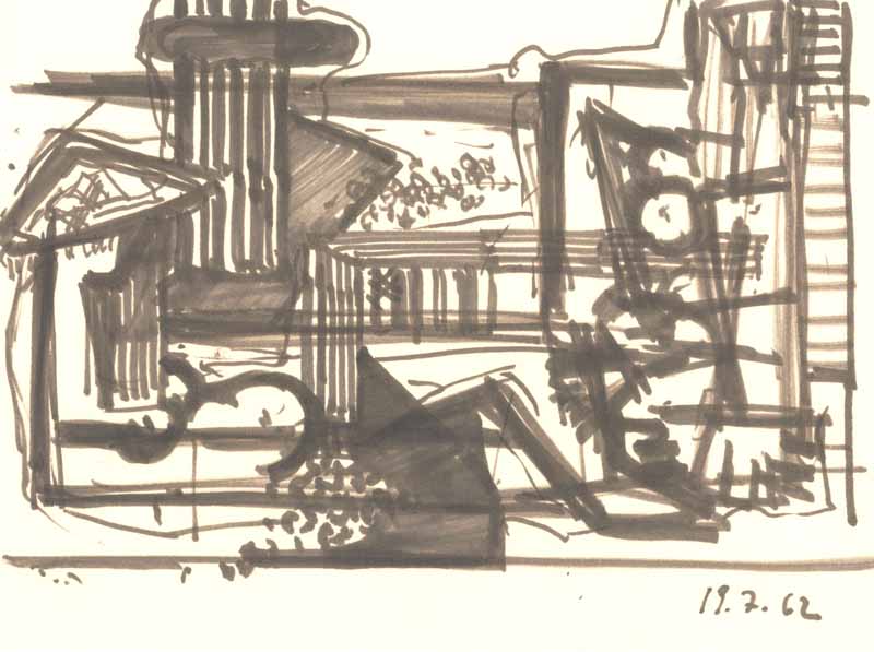 Frauen am Strand , 1962; Maße: 21 x 28 cm,Graphik: Handzeichnung: Tusche auf Zeichenpapier