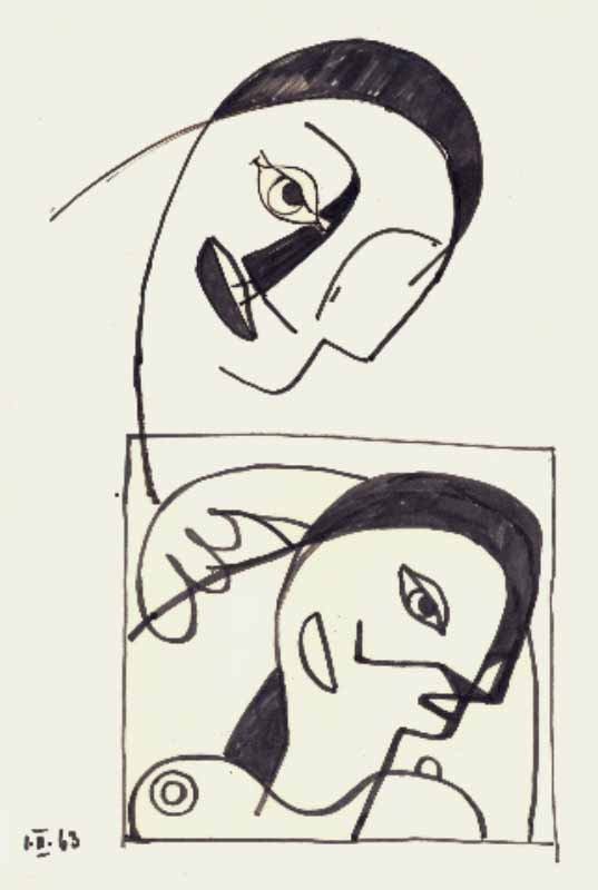 Variationen "Zwei Köpfe"; 1963; Maße: 39 x 25 cm,Graphik: Handzeichnung; Tusche auf Zeichenpapier